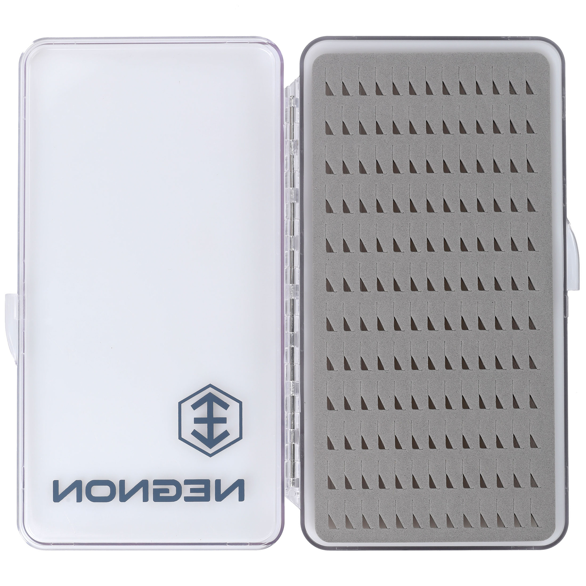 Boîte à mouches transparente Negnon Slim - Large est une boîte simple et pratique pour les nymphes et les streamers. Son design plat lui permet de trouver facilement sa place sur une étagère. Le boîtier transparent permet de voir rapidement le contenu sans avoir à ouvrir la boîte. Une charnière robuste et une simple fermeture par pression garantissent la durabilité et la facilité d'utilisation. A l'intérieur, il y a un insert en mousse pour épingler les mouches, avec des découpes disponibles en différentes variantes. Choisissez la variante qui répond le mieux à vos besoins.