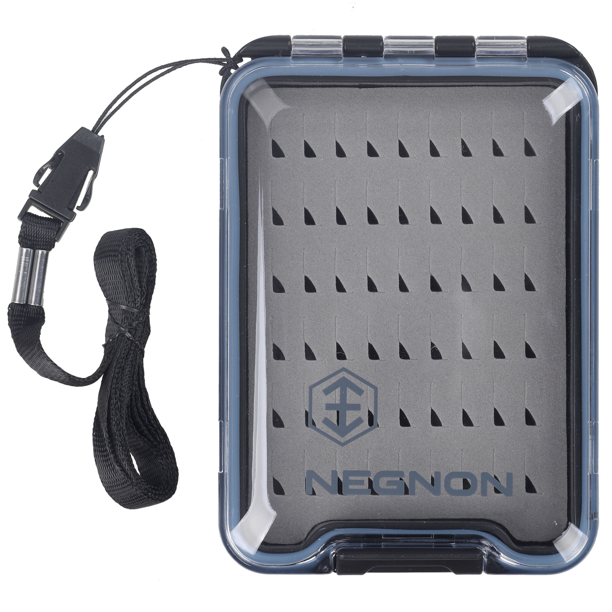 Boîte à mouches Negnon View sur le côté - Petite est une petite boîte, facile à transporter et très pratique pour tous les types de mouches. Équipé d'un joint d'étanchéité, il assure une étanchéité totale lorsqu'il est fermé. Le boîtier transparent permet de voir rapidement le contenu sans avoir à ouvrir la boîte. Une charnière robuste et une fermeture sûre garantissent la durabilité et la sécurité du stockage. Il est doté d'un mousqueton et d'une lanière, ce qui permet de l'attacher à l'équipement ou de le porter au poignet, évitant ainsi que la boîte ne tombe accidentellement. A l'intérieur, il y a un insert en mousse pour épingler les mouches, avec des découpes disponibles en différentes variantes. Choisissez la variante qui répond le mieux à vos besoins.