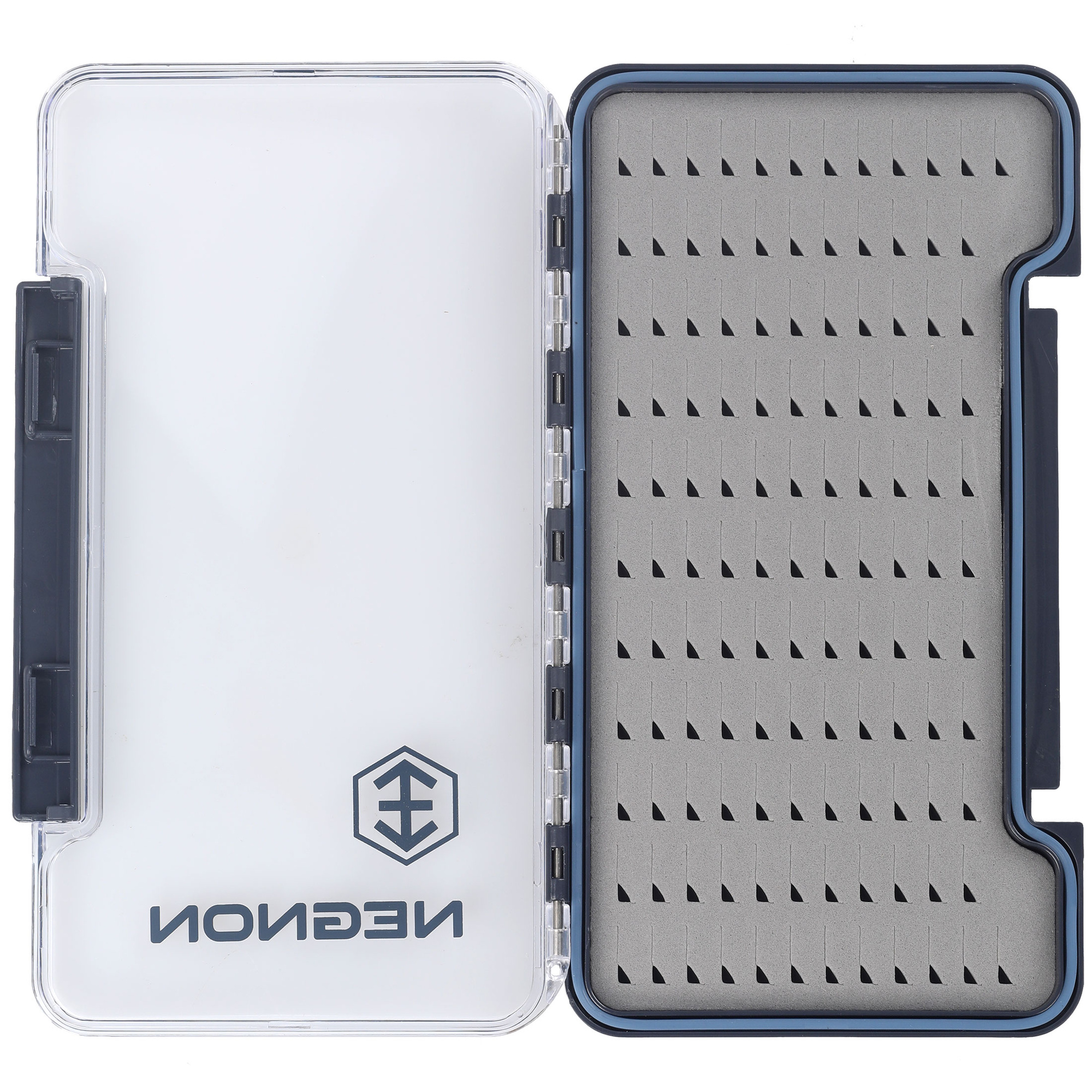 Boîte à mouches étroite Negnon View - Large est une boîte élégante et fonctionnelle pour les nymphes et les streamers. Le boîtier transparent permet de voir rapidement le contenu sans avoir à ouvrir la boîte. Une charnière et une fermeture robustes garantissent la durabilité et la fiabilité. Grâce au joint, la boîte est étanche lorsqu'elle est fermée. À l'intérieur, on trouve un insert en mousse pour épingler les mouches (disponible avec des découpes dans différentes variantes), des compartiments pour les petits objets, ou une combinaison de mousse et de compartiments. Choisissez la variante qui répond le mieux à vos besoins.