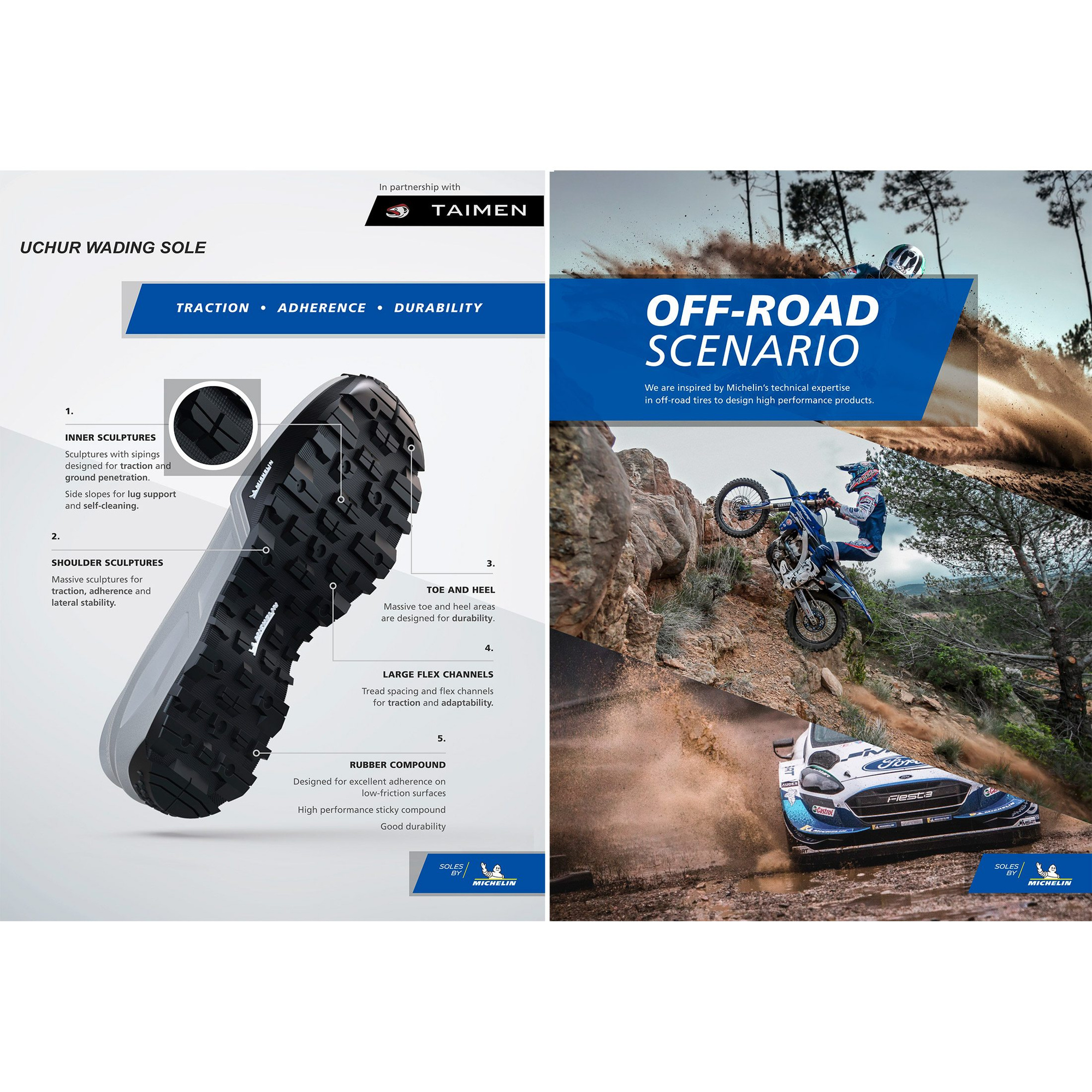 Nous sommes fiers de présenter les Taimen Uchur Wading Boots, créé en collaboration avec le légendaire fabricant de pneus Michelin®. Grâce à la combinaison des dernières technologies en matière de conception et de production de semelles, ainsi qu'à des innovations dans la fabrication des chaussures de wading, ces chaussures de wading révolutionnaires introduisent une toute nouvelle norme en matière d'adhérence, de durabilité sur les surfaces mouillées et de sécurité.