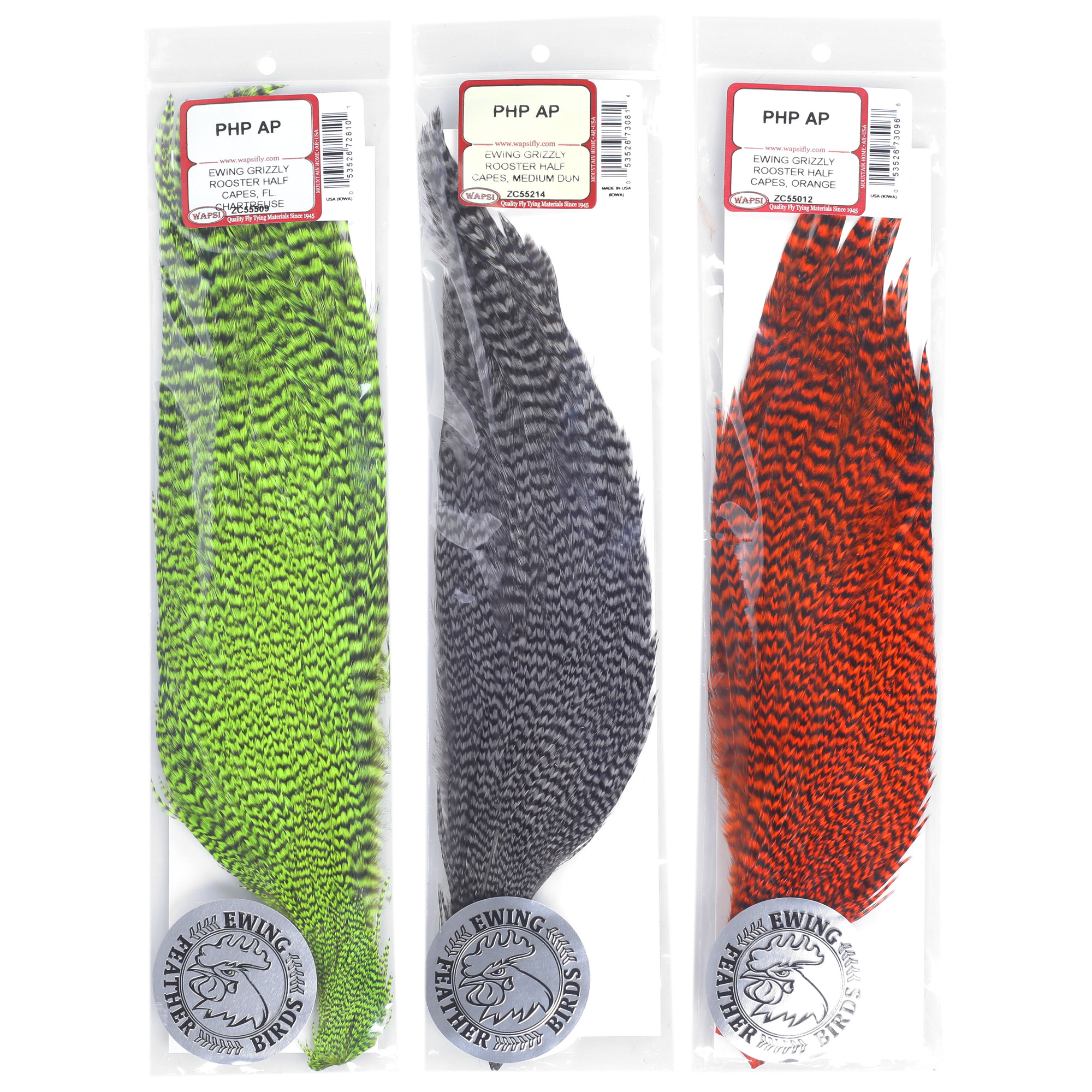 Demi-casquettes Ewing Grizzle. Teinté sur Grizzly. Ces demi-capes proviennent du cou du coq. Les plumes sont d'une qualité exceptionnelle pour d'innombrables applications.