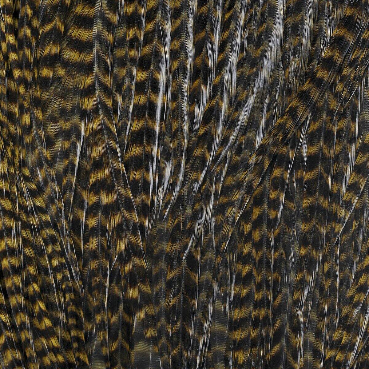 Demi-selles Ewing Grizzly : Les demi-selles Ewing Grizzly sont en train de devenir un élément essentiel de l'arsenal de tout monteur de mouches. Réputées pour leur texture "grizzly", elles n'offrent pas seulement un attrait esthétique, mais aussi une grande fonctionnalité. Les plumes de ces demi-selles sont longues et robustes et conviennent à une large gamme de modèles de mouches, des petites mouches sèches aux gros streamers. Parfait pour les débutants et les pêcheurs expérimentés qui apprécient la qualité et la polyvalence de leur matériel de montage de mouches.