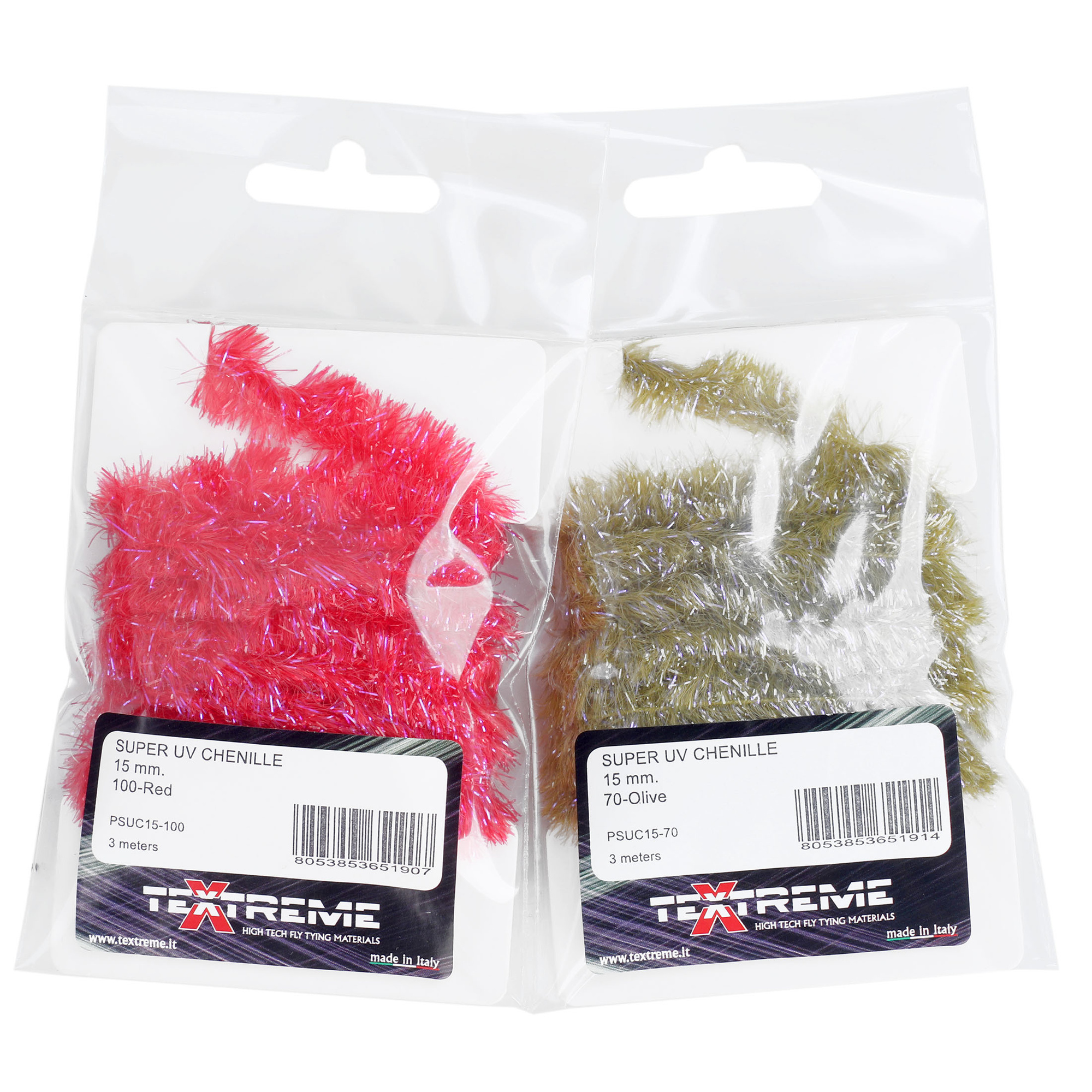 Chenille extrêmement dense composée d'un mélange de fibres translucides et ultraviolettes, parfaitement ancrées grâce à l'utilisation de matériaux technologiques spéciaux, ce qui évite qu'elles ne se perdent pendant l'utilisation. Bien qu'il soit principalement conçu pour les Blobs, il convient également pour les corps de streamers.