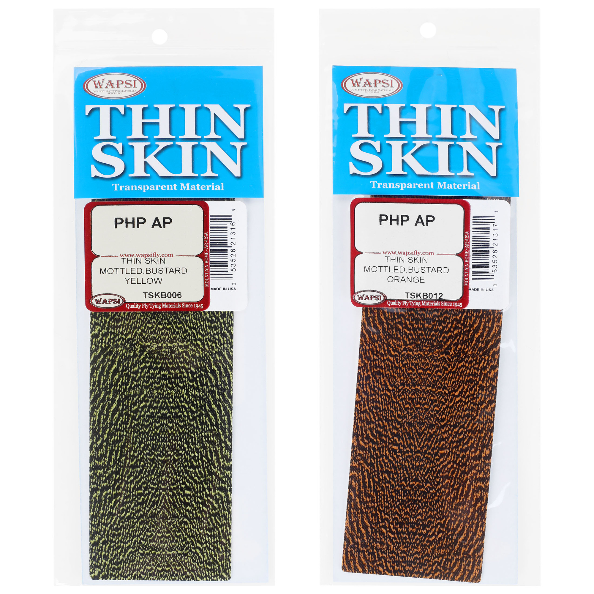 Thin Skin est .004" et peut être utilisé sur des mouches de taille supérieure à 18. Il est extensible et transparent, avec une finition mate d'un côté et une finition brillante de l'autre. Le support facilite la découpe à la largeur voulue. Utilisé pour les ailes et les dos de nymphes pour les scuds, les cloportes, les écrevisses et les crevettes.